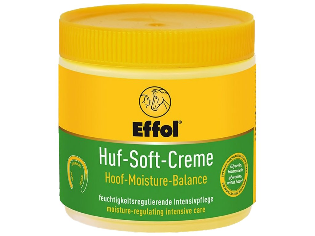 Balzám na kopyta koní EFFOL Hoof Soft velmi dobře zvlhčuje kopyta. Speciálně vyvinutá složka zajišťuje optimální vlhkost rohoviny kopyt a tím se zvyšuje jeho odolnost. - glycerín a vilín obsažený v přípravku dlouhodobě poskytují suchým a popraskaným kopytům vlhkost a podporují jejich elasticitu a schopnost zátěže - navenek je před vlhkostí chrání ochranný film z včelího vosku a lanolínu, odpuzující vodu.