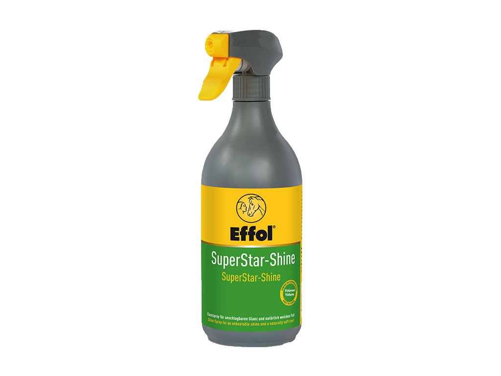 EFFOL SuperStar-Shine - lesk na srst, hřívu a ocas 750ml je vynikající prostředek dodávající srsti a žíním nádherný lesk a objem. Rozčesávání a čištění bude jednodušší a tento efekt vydrží až několik dní. Obsahuje silikonové emulze, pečuje o žíně a je šetrný k pokožce.