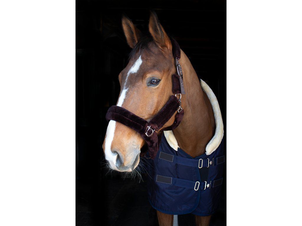 Extrémně měkká a pohodlná ohlávka z umělého beránku. Ohlávka je vyrobena z polypropylenového popruhu v kombinaci s umělým beránkem, který je velmi lehký a tím snižuje tlak na hlavu koně a je tedy vhodný i na delší cesty. Beránek pokrývá povrch celé ohlávky vč. spon a tím omezuje možnost poranění.
