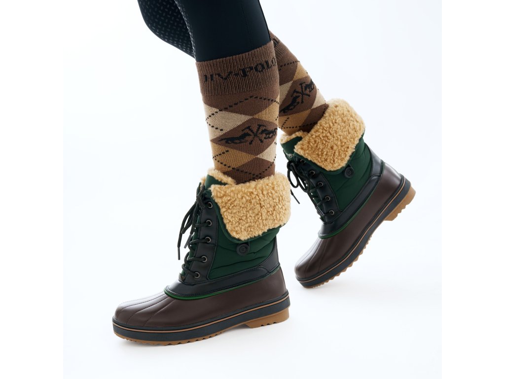 Vkročte do světa, kde se elegance setkává s funkčností, se zimními botami HVP-Glaslynn Luxe. Tyto boty, navržené pro nadšené jezdce, dokonale spojují styl a praktičnost. Představte si, že sebevědomě kráčíte po stájích nebo zasněženou krajinou s jistotou, že vaše nohy jsou v teple chráněny. Reflexní koně a logo HV Polo dodávají nádech tradice a zároveň zvyšují viditelnost a harmonizují odkaz póla s moderními potřebami. Bezkonkurenční teplo a unikátní reliéfní vzor loga dělají z těchto bot nejen doplněk, ale i výrazný prvek.